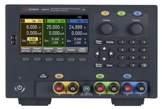 E36313A 是一款可編程 160 W 三路輸出直流電源,配有 USB 和 LAN 接口。可選配 GPIB 接口。
