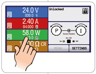 手動操作通過TFT觸摸屏、兩個旋鈕與一個按鈕來完成。大的彩色顯示器一次性顯示所有設定與實際值。通過人機界面可完成整個設置,包括函數(方形,三角形,正弦形)的配置等。